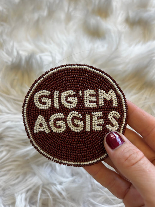 Texas A&M Gig 'em Beaded Button in Maroon and White