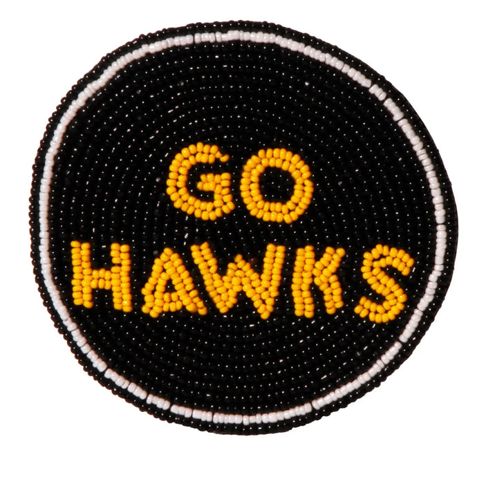 Iowa Go Hawks Beaded Button in Black and Yellow - Game Day Pin