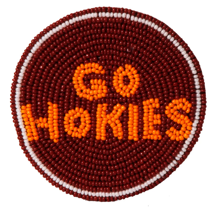 Virginia Tech "Go Hokies" Beaded Button in Maroon and Orange - Game Day Pin