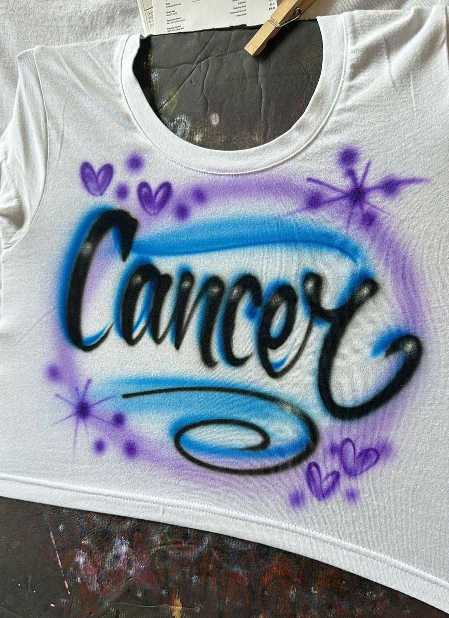 All designs are airbrushed on the FRONT of our slim crop tee unless specified otherwise.