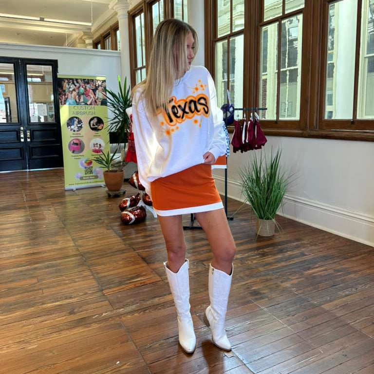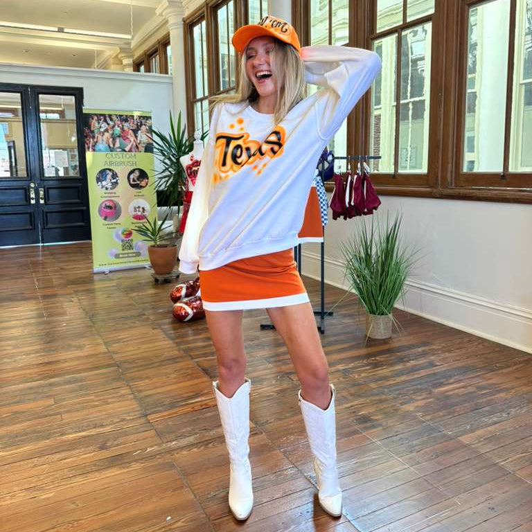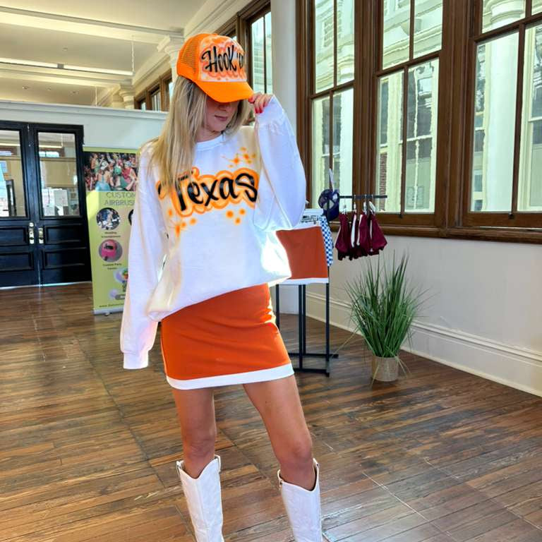 Stay cozy and show your team spirit all season long with our custom airbrushed fleece crewneck sweater, handmade with love in Galveston, Texas!