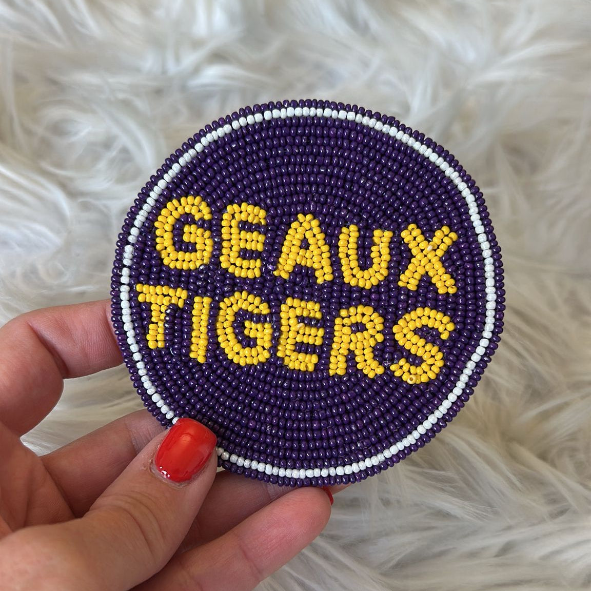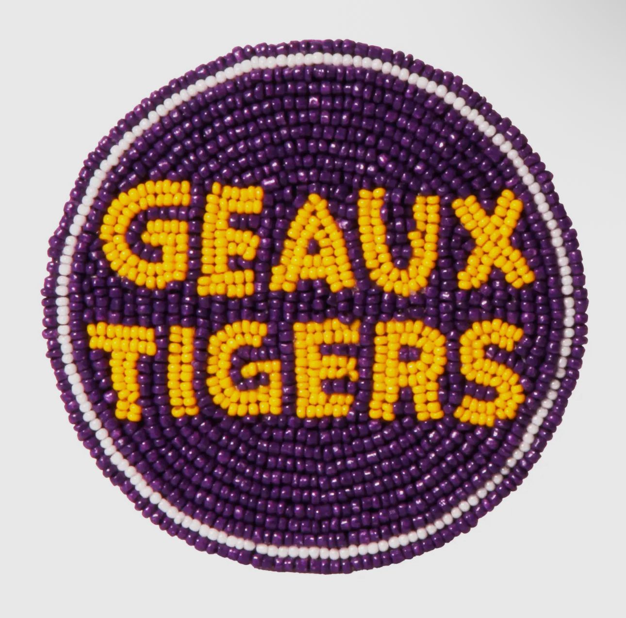 Cheer on the Tigers with the LSU Geaux Tigers Beaded Button!