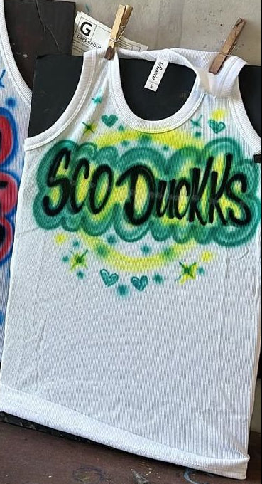 DESIGN PLACEMENT: All designs are airbrushed on the FRONT of our White Beater Tank top unless specified otherwise.