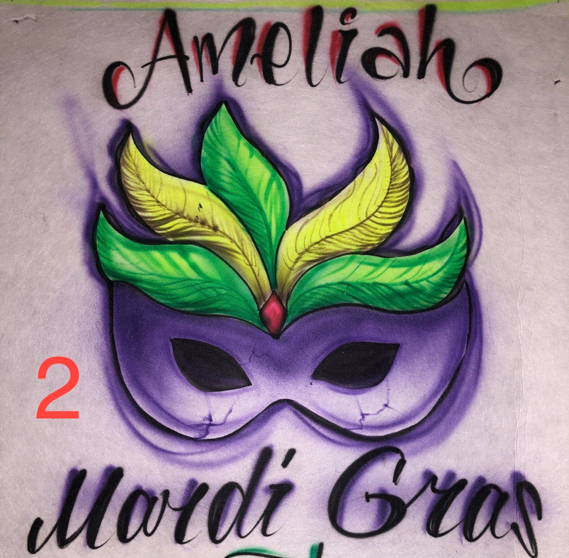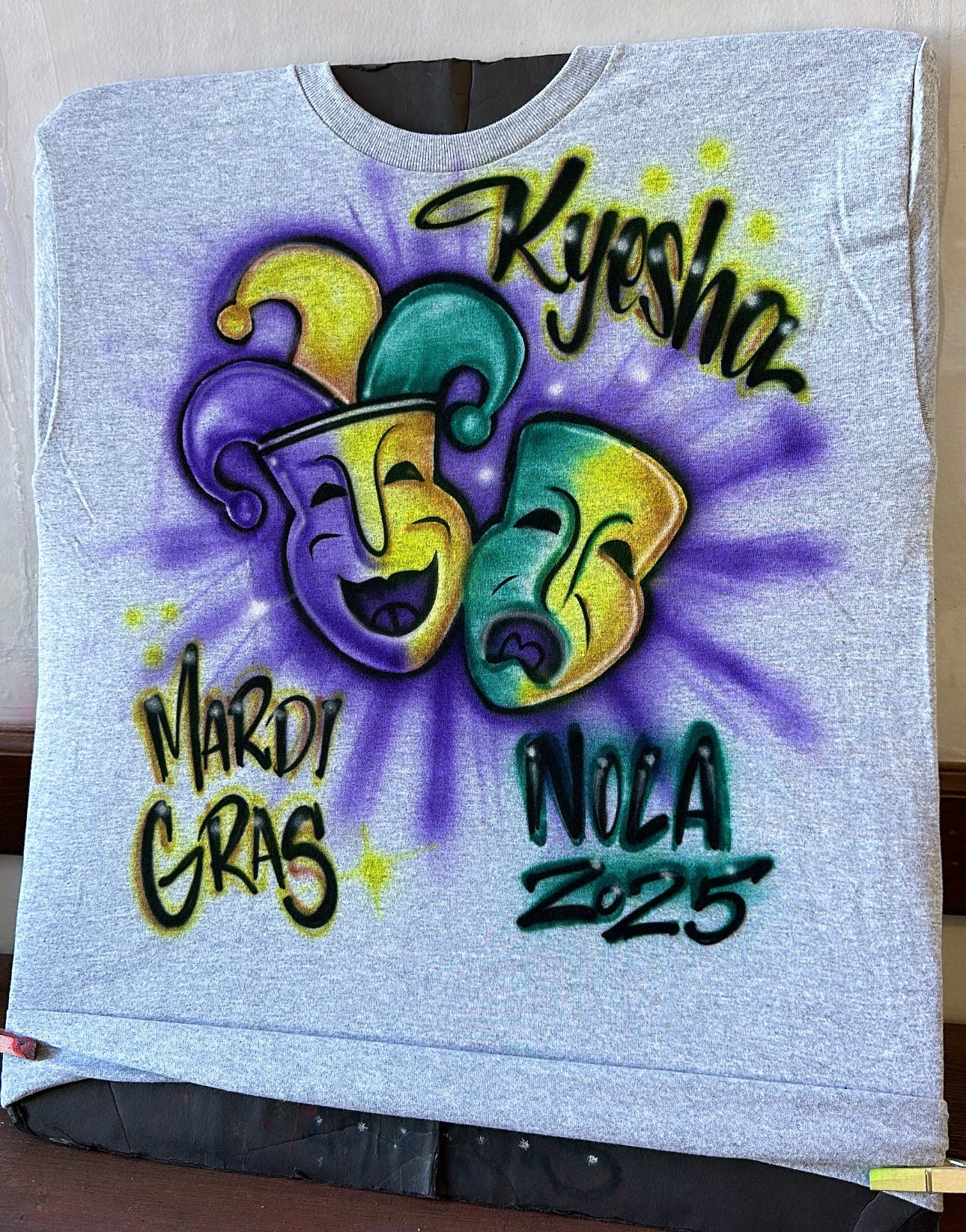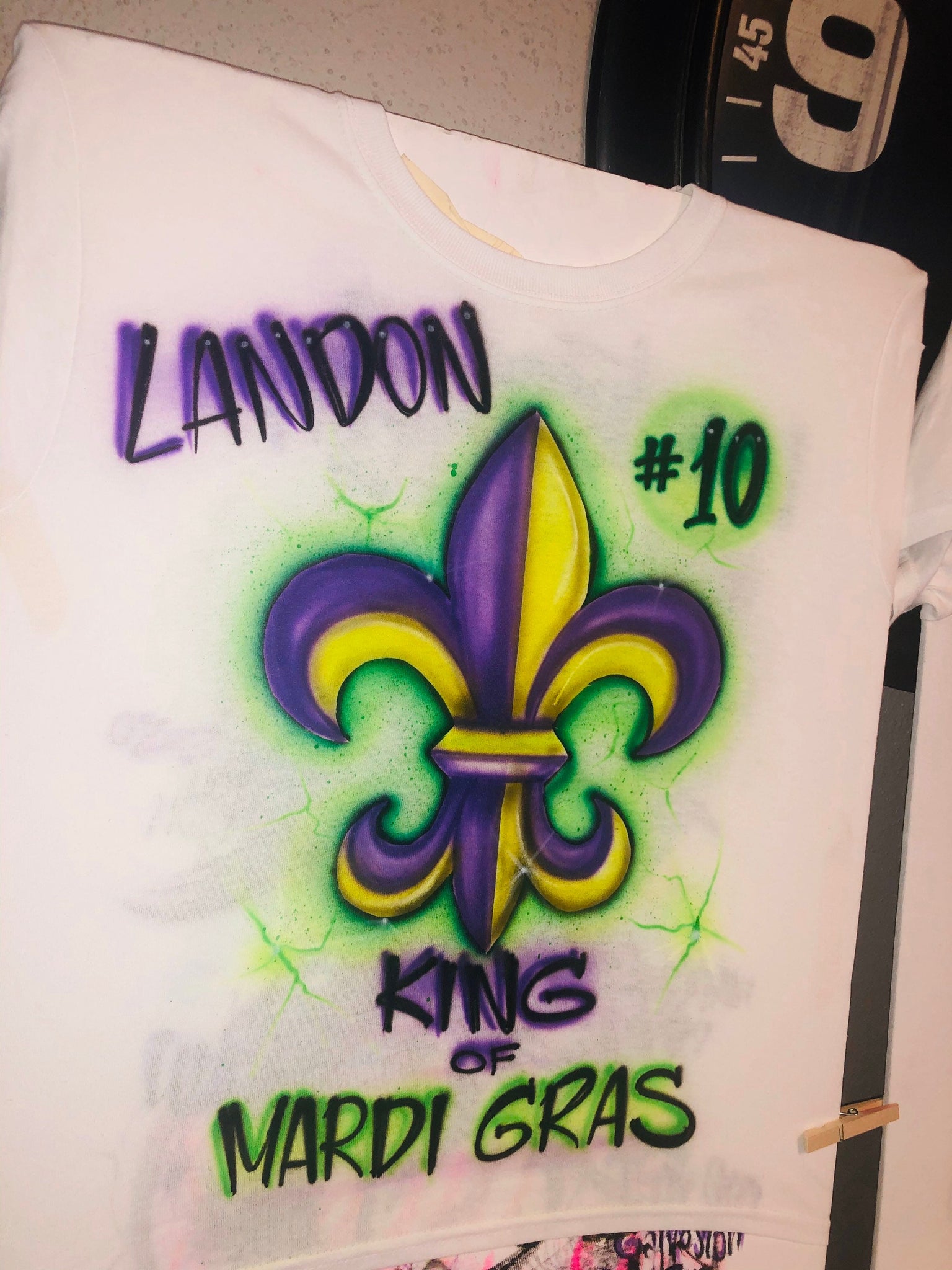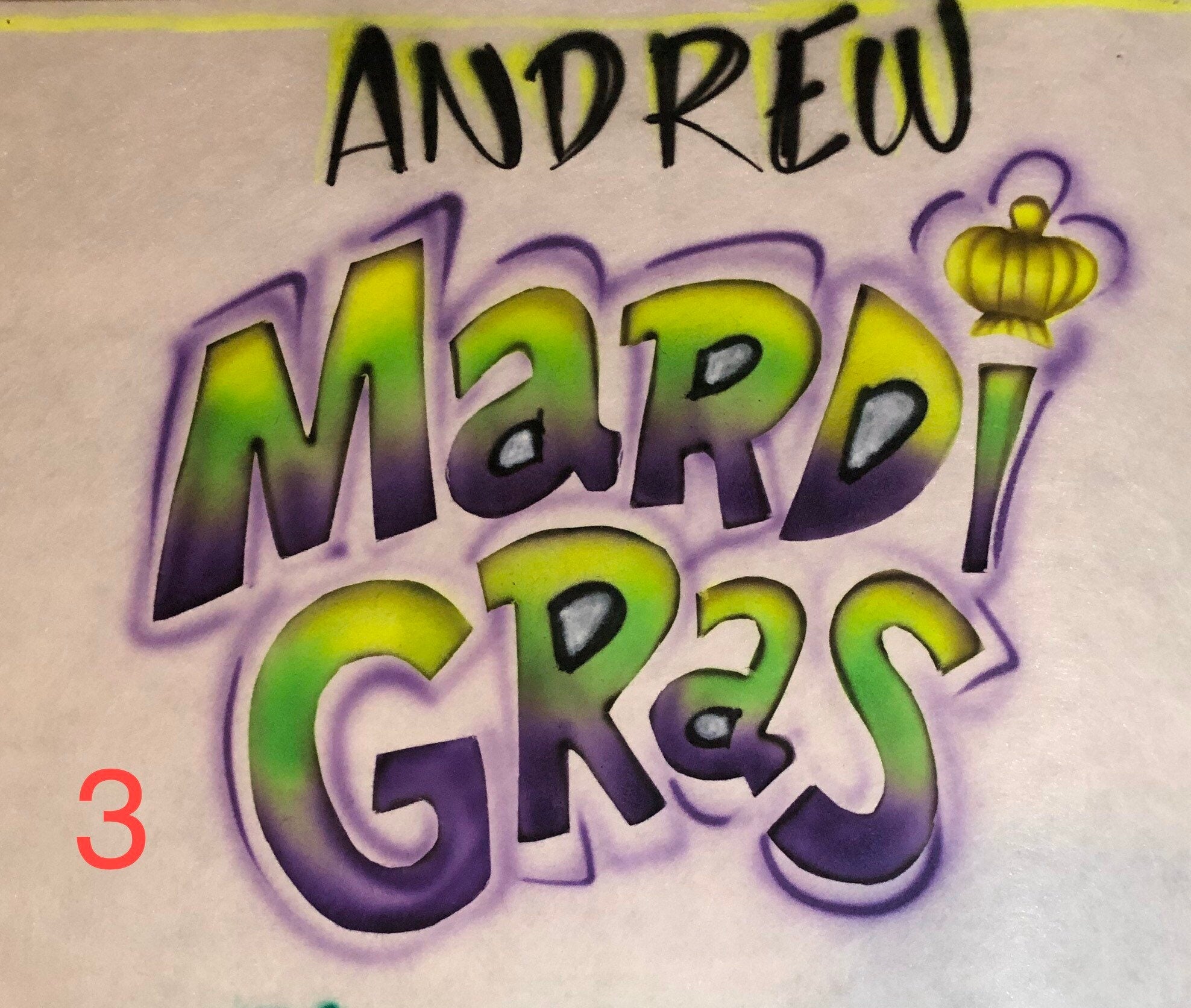 Mardi Gras Custom Personalized Airbrush Name T-shirt.