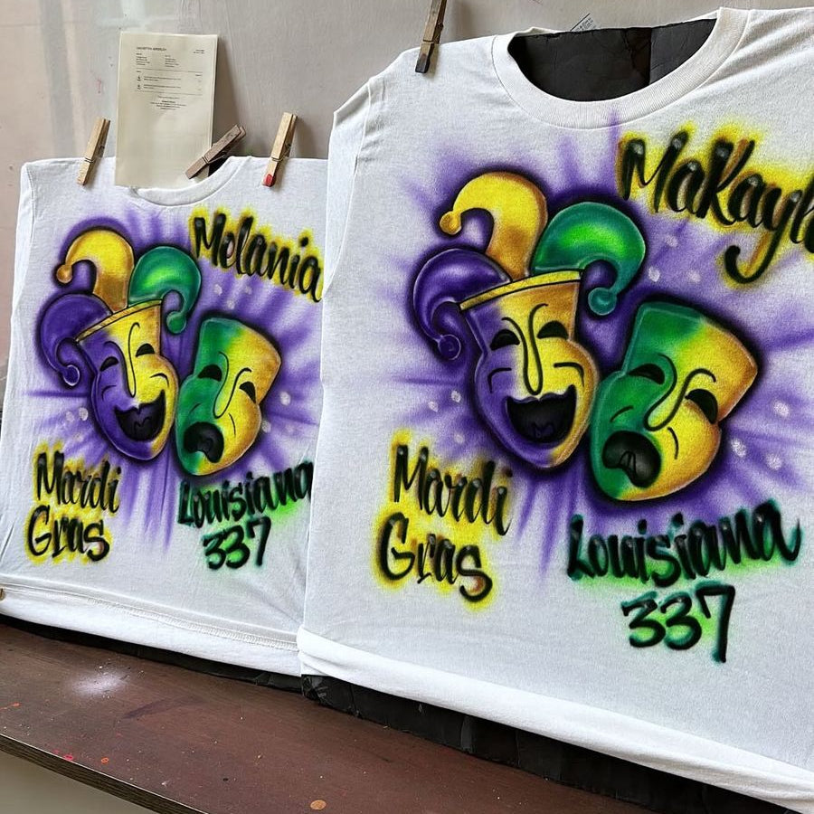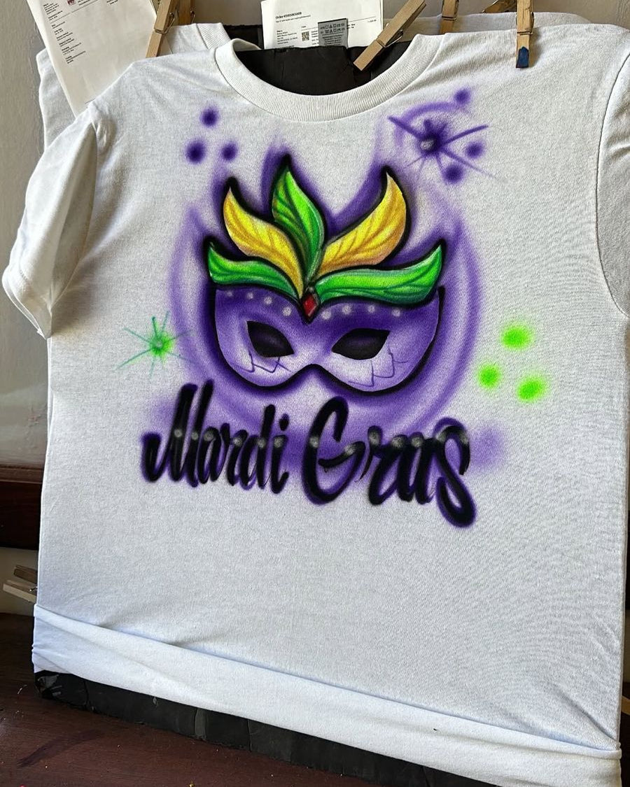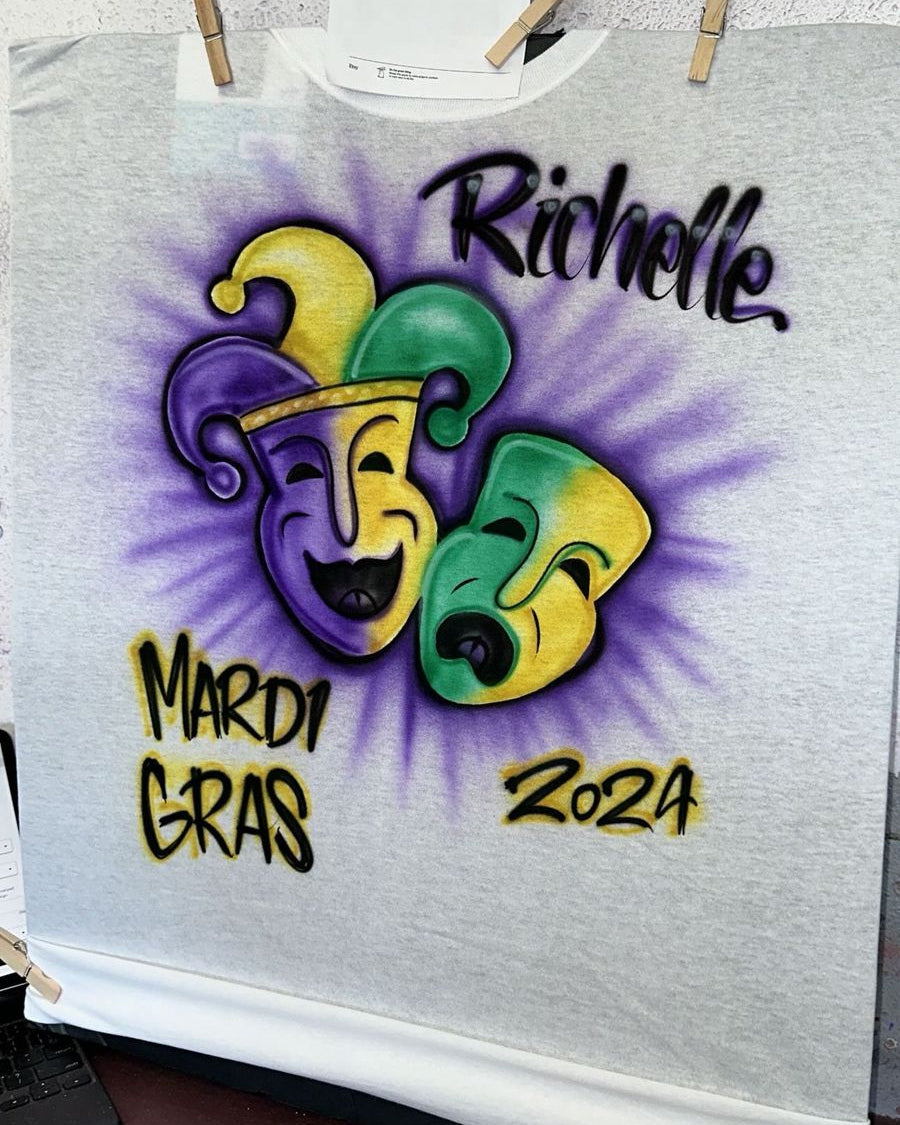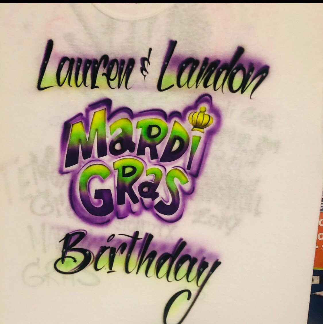 Mardi Gras Custom Personalized Airbrush Name T-shirt.