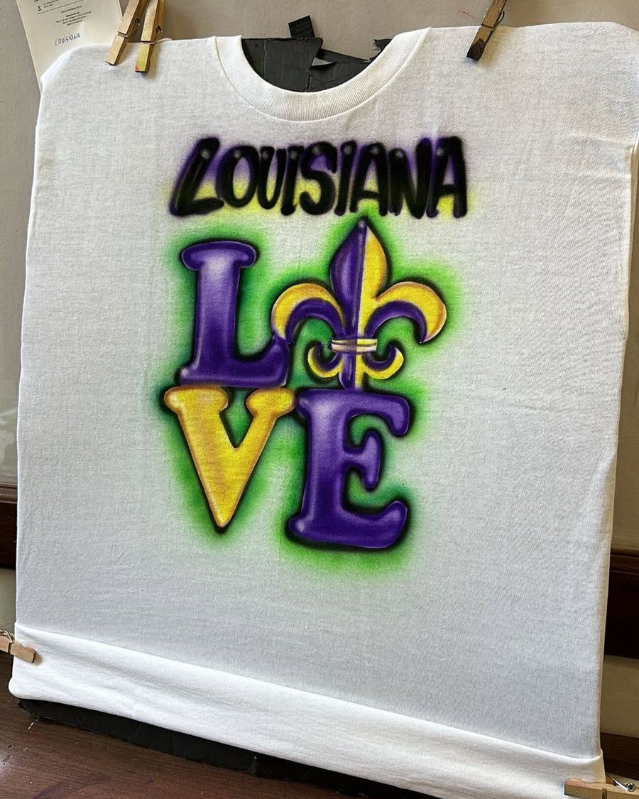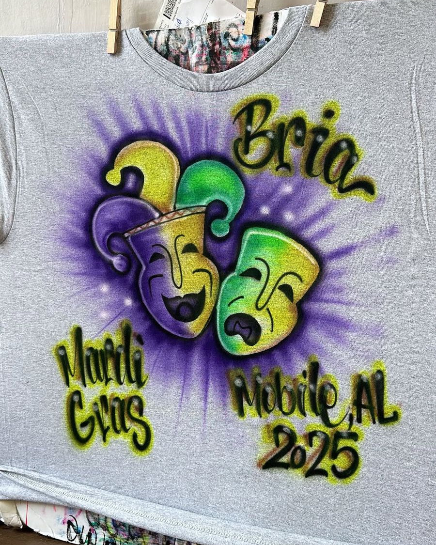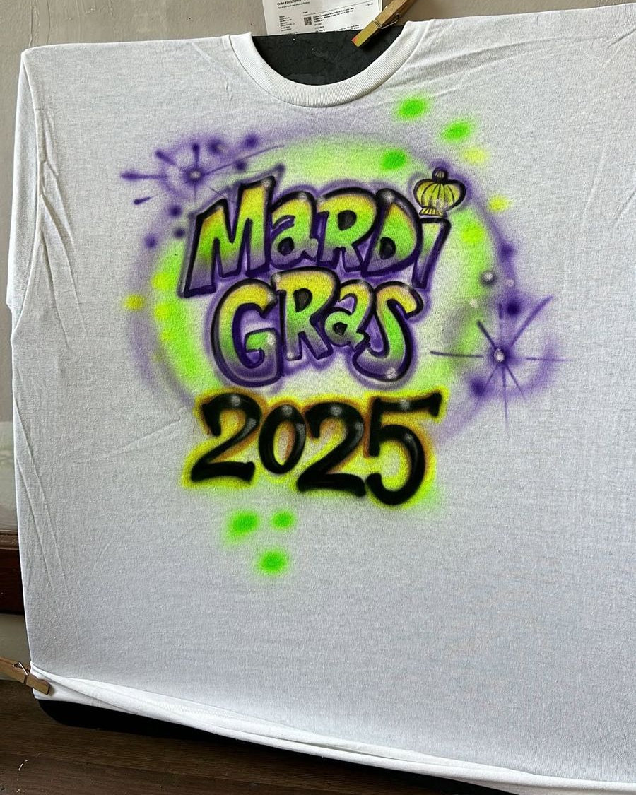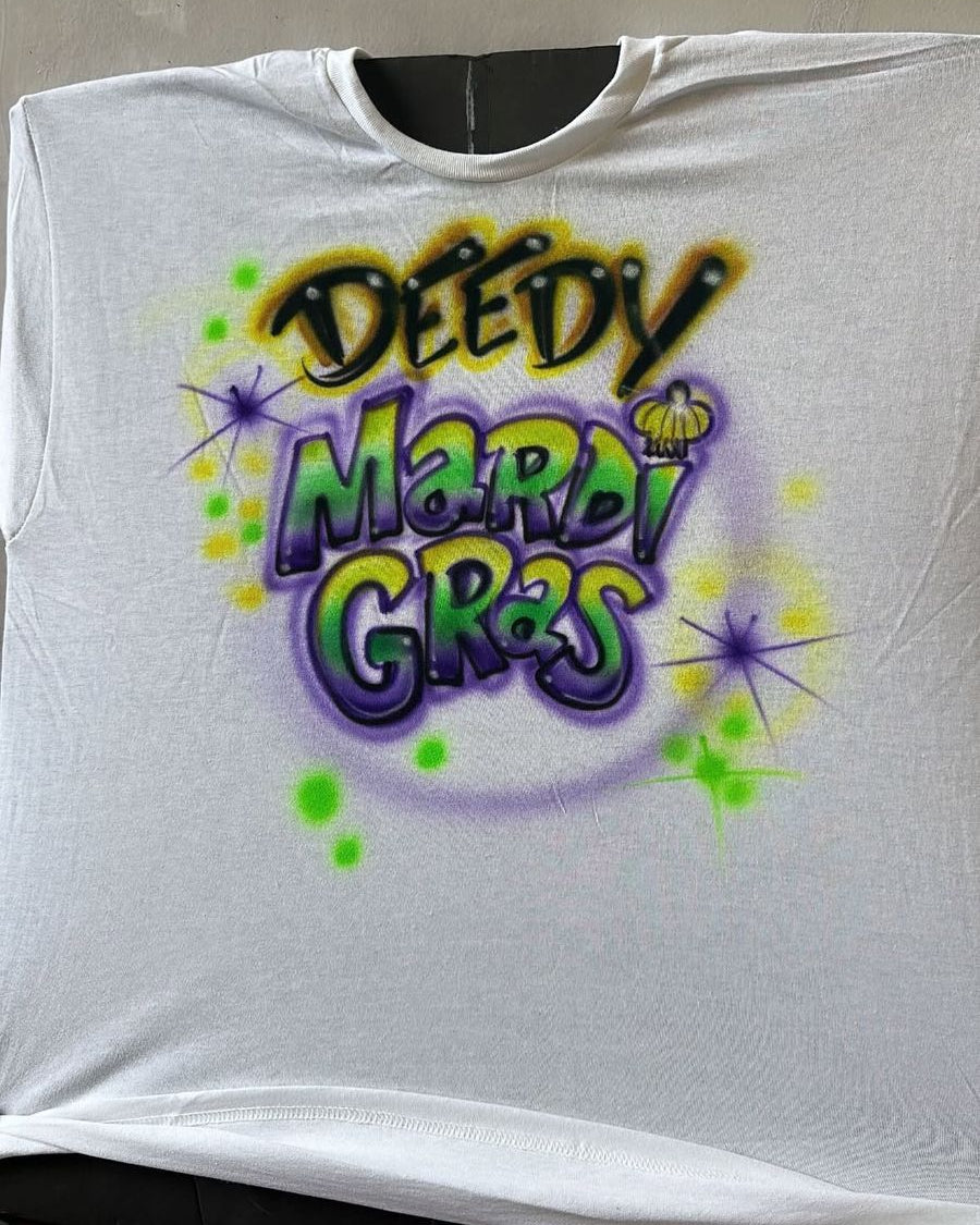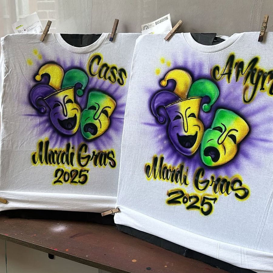 Mardi Gras Custom Personalized Airbrush Name T-shirt.
