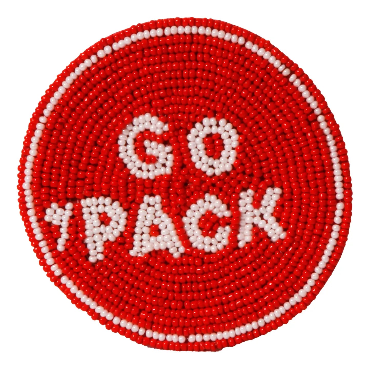 Hand-beaded design with crimson and white for authentic team vibes