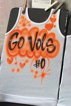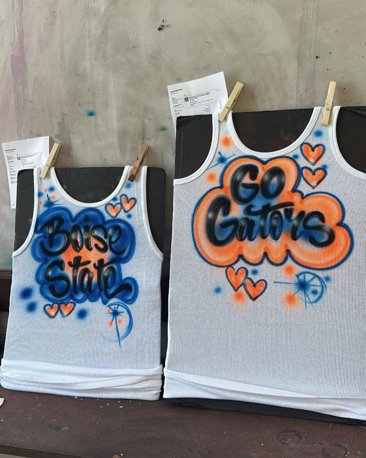 This Custom Airbrush Tank Top will be a perfect addition to your Game Day outfit. It can be customized with words and colors of your choice.
