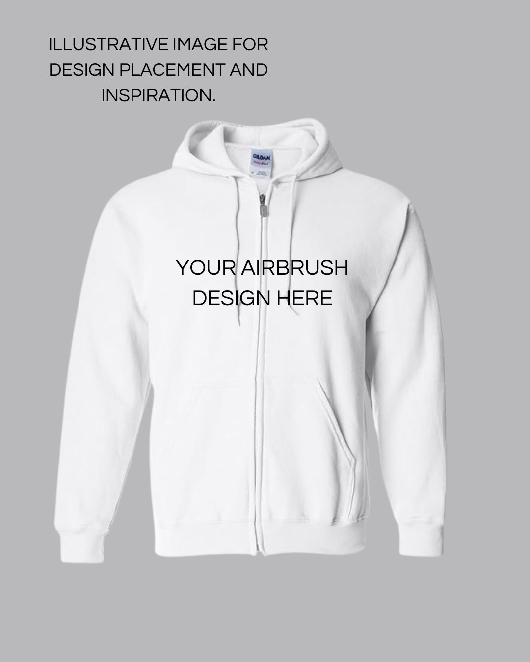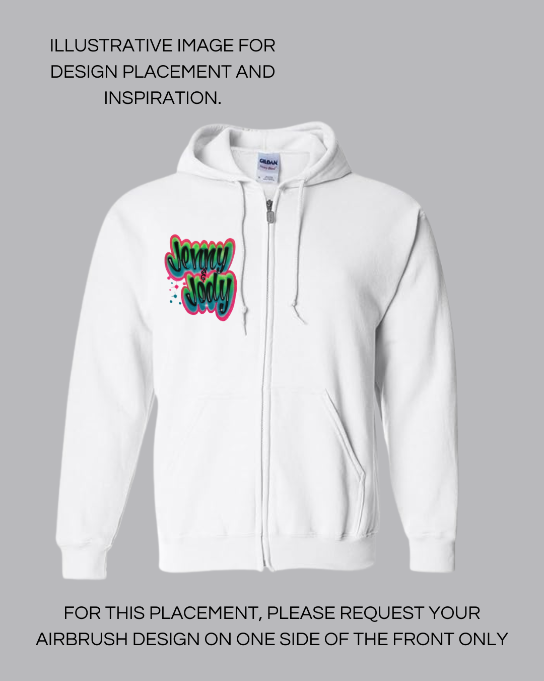 All designs are airbrushed on the FRONT of the hoodie unless specified otherwise.