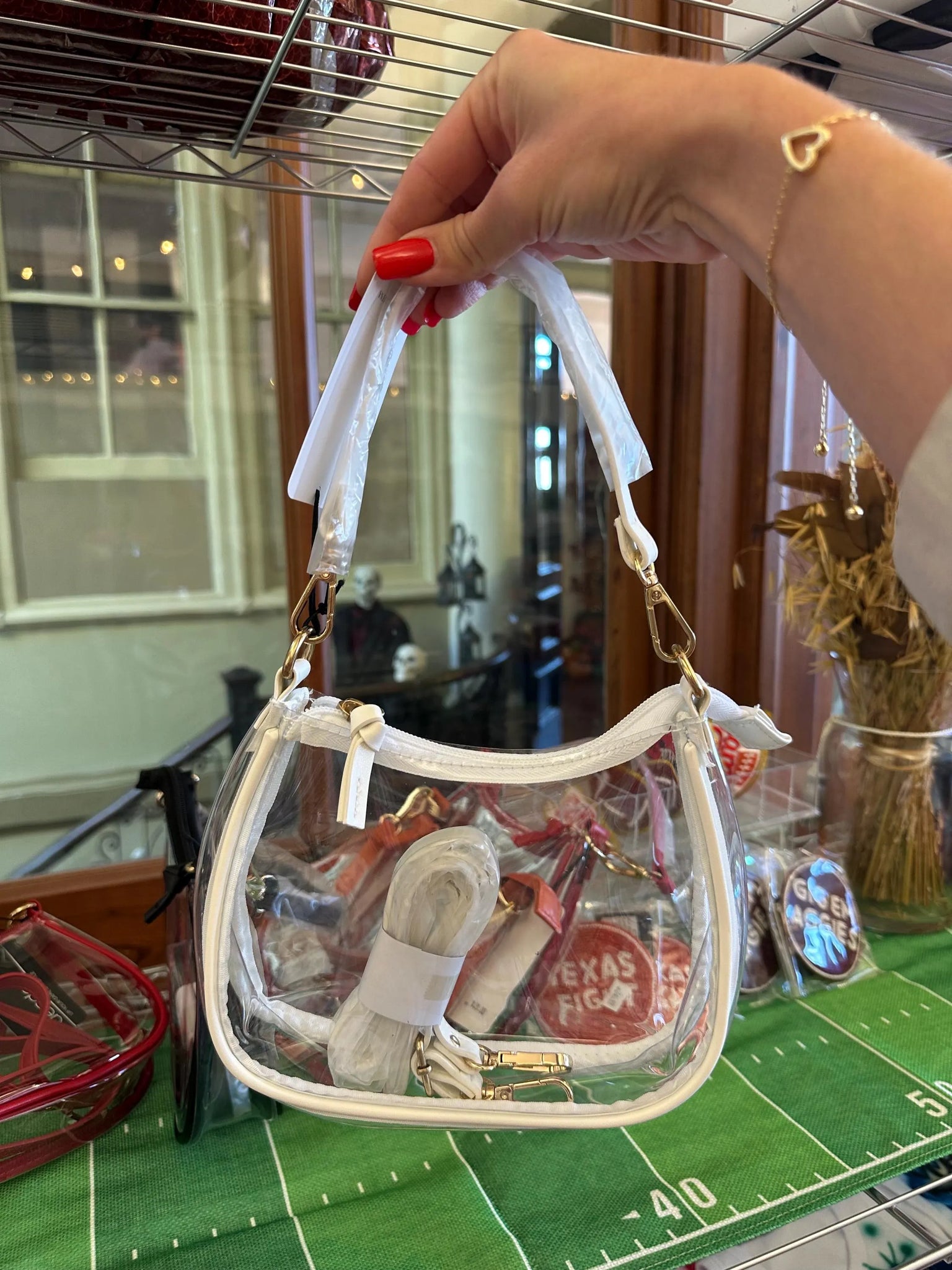 Stay organized and stylish with the Clara Game Day Clear Purse in White — the perfect match for any spirited outfit!