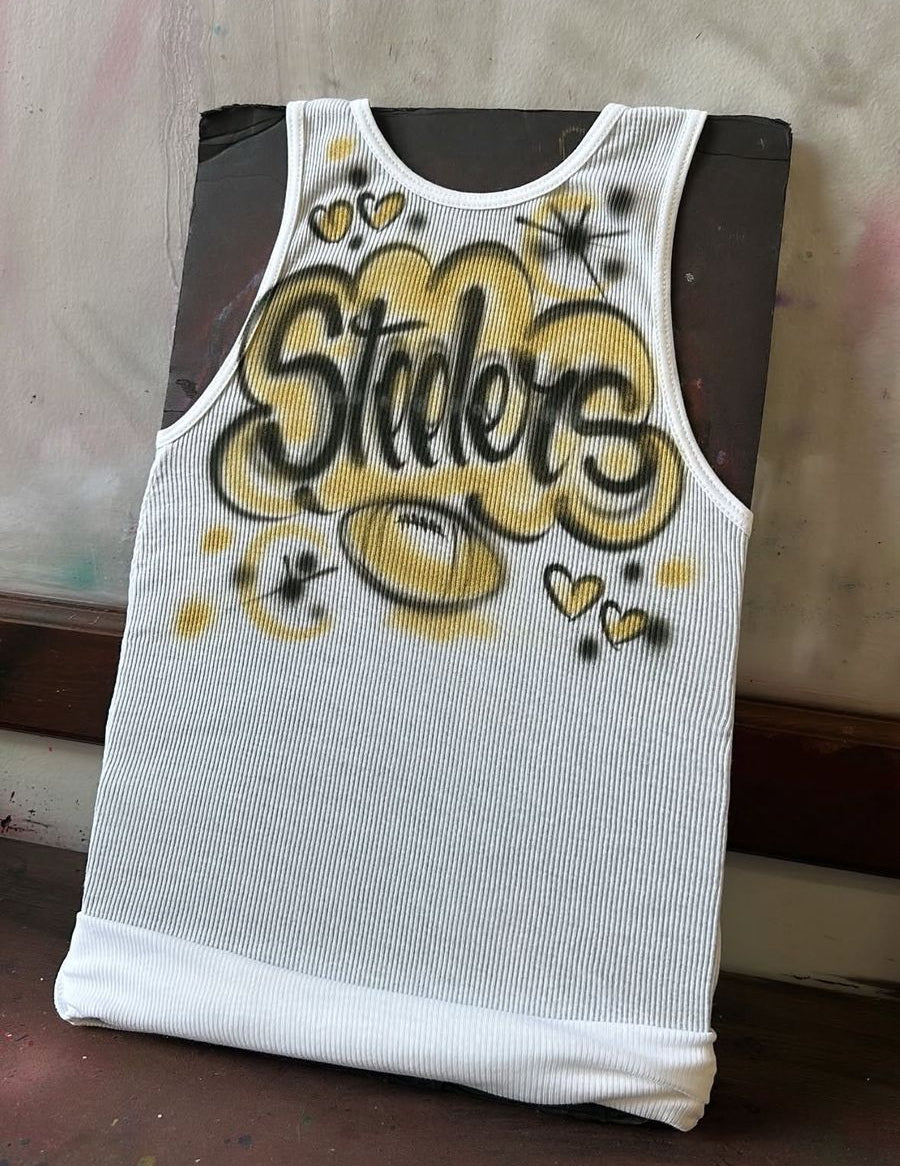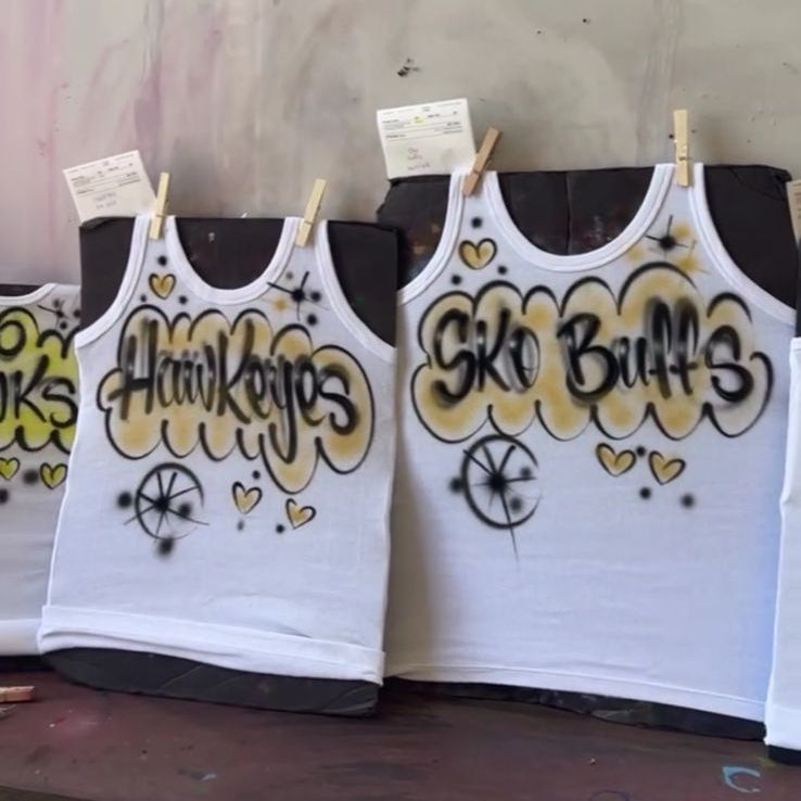 DESIGN PLACEMENT: All designs are airbrushed on the FRONT of our White Beater Tank top unless specified otherwise.