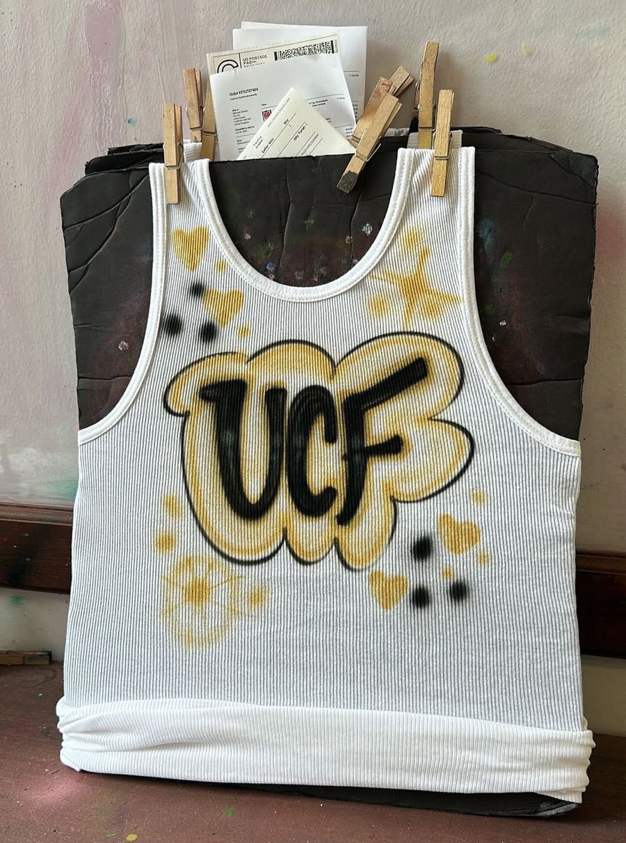 This Custom Airbrush Tank Top will be a perfect addition to your Game Day outfit. It can be customized with words and colors of your choice.